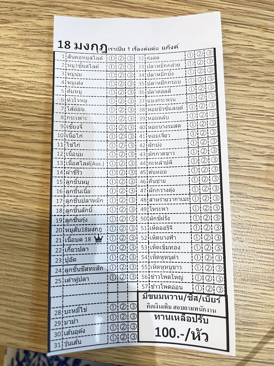 Despite a few occasional shortages, the overall food quality and variety—from succulent seafood to thoughtfully prepared meats—keep diners returning frequently. Prices are affordable, with the buffet priced at 199 THB, excluding drinks and desserts, yet the value is impressive given the array of options and cleanliness. Whether visiting during relaxed daytime hours or bustling dinner times, 18 Mongkut balances flavor, service, and atmosphere perfectly, making it a beloved hotspot for local food enthusiasts seeking satisfying and memorable meals.